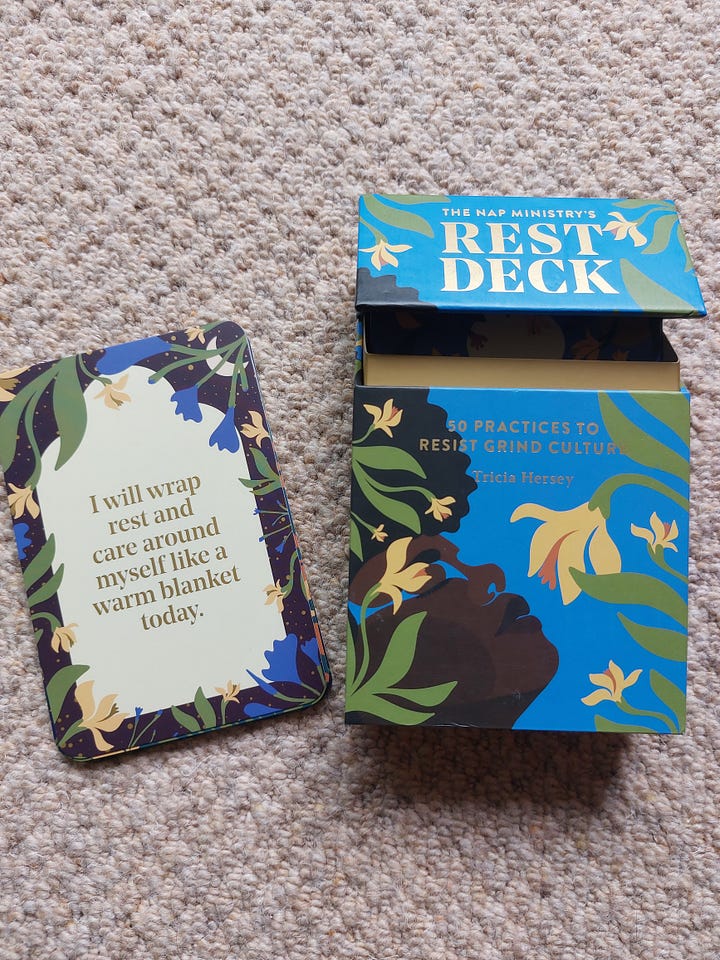 - I had this book on my TBR for so long and, as so often happens, picked up it up at the time when I most needed it. I particularly appreciate the ‘dear one’ love notes at the start of each chapter.Book and card deck: Tricia Hersey - Rest is Resistance and The Nap Ministry Rest Deck - I’m so grateful to the imagination, innovation and revolutionary work of Tricia Hersey and the Nap Ministry. I’ve been re-reading Rest is Resistance via audio (beautifully read by Tricia) and have been pulling cards from her beautiful nap ministry deck. This unlearning of white supremacist capitalist patriarchy is huge, lifelong work…